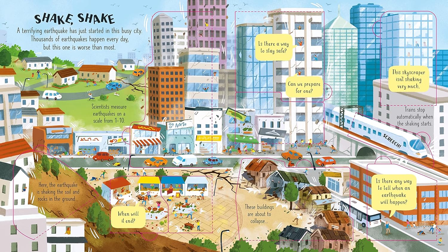 Have you ever wondered what it feels like to be in an earthquake, or close to a volcano when it erupts? With lots of flaps to lift, this book takes you on a tour of shaking cities and rumbling volcanoes to discover why these forces happen, how they shape our planet, and how people live in places where they strike.