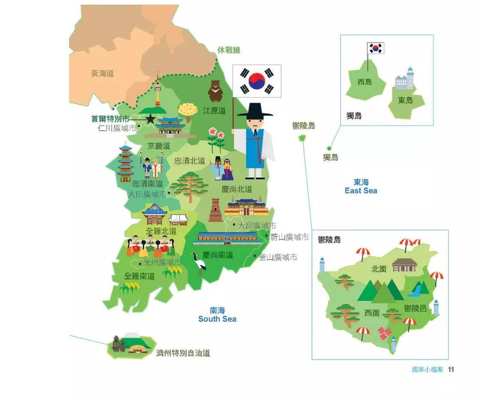有著韓服、韓屋等美麗傳統的韓國,實現漢江奇蹟的韓國,本書搭配可愛的圖畫,從各式各樣的角度介紹了韓國的相關資訊,讓你能對韓國有更進一步的了解!