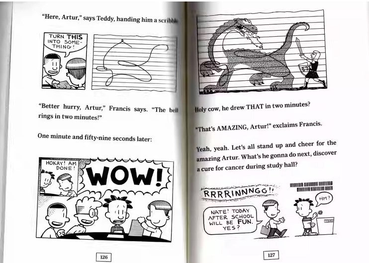 Big Nate Strikes Again: BIG NATE will surpass all others! But it won’t be easy. He’s stuck with Gina, his all-time enemy, in a class project for his least favorite teacher Mrs. Godfrey, aka Godzilla. To make matters worse, Gina ALSO ends up on his fleeceball team, right when Nate is set to win his first fleeceball championship ever. This is his moment for glory, but Gina's sure to steal his thunder, or ruin everything. Will Nate win or lose? Pass or fail? Or end up in detention . . . AGAIN?