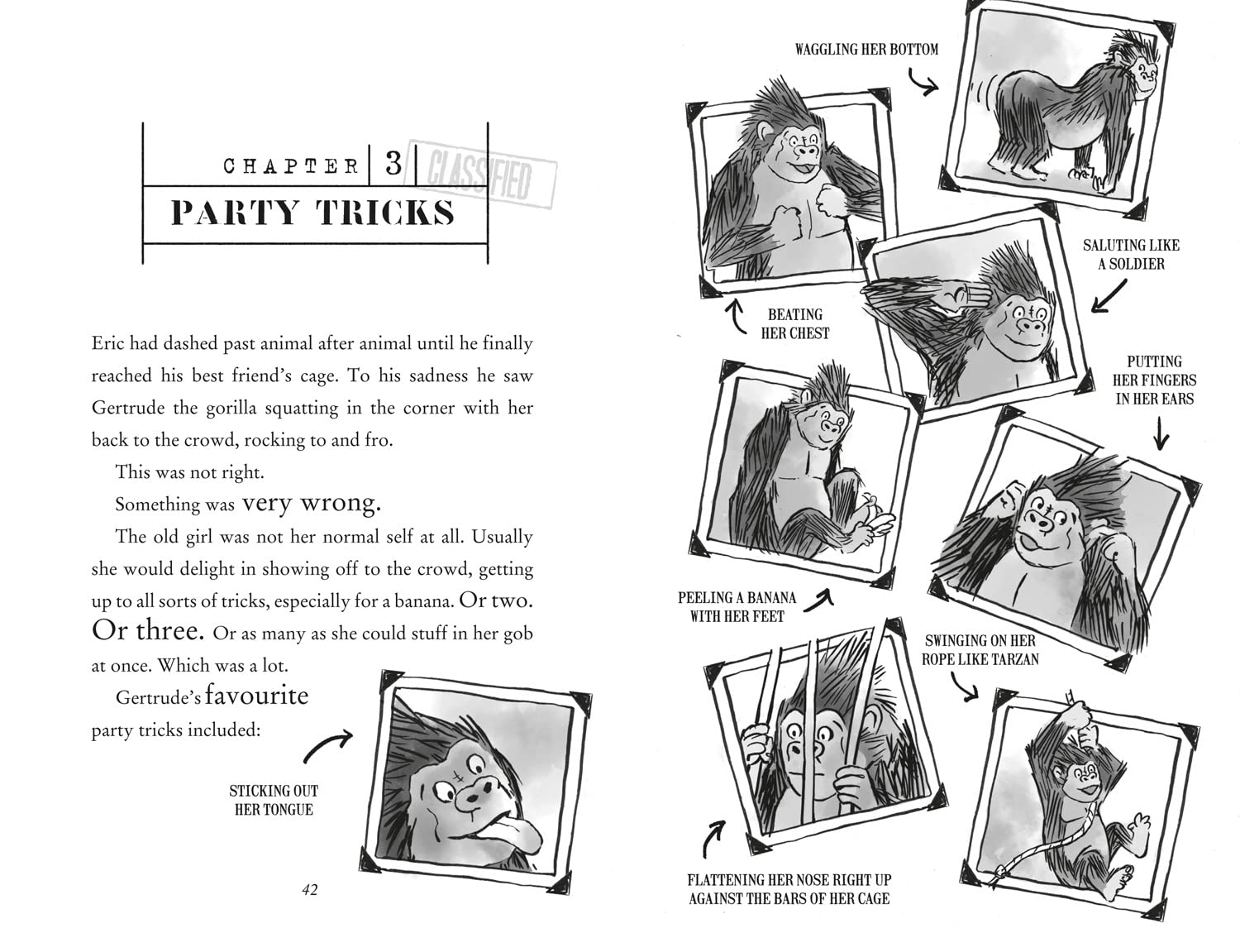 Go back in time with No. 1 bestselling author David Walliams for a whizz-bang epic adventure of action, laughter and secret plots – and the extraordinary friendship between a little boy and a huge gorilla that just might save the day…1940. Britain is at war with Nazi Germany.Eleven-year-old Eric spends his days at the place that makes him most London Zoo. And there’s one animal in particular he Gertrude the gorilla.With bombs falling all over London, Eric must rescue Gertrude.Together with his Uncle Sid, a keeper at the zoo, the three go on the run. But while hiding out at the seaside they uncover a top-secret Nazi plot…Join David Walliams on this action-packed, laugh-out-loud adventure for all the family!