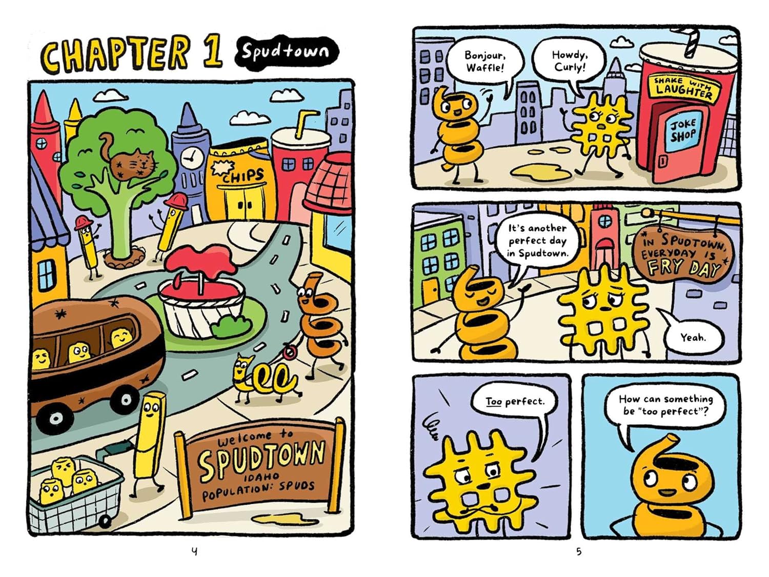 Waffle has always dreamed about adventure outside her small town of Spudtown, Idaho. But as it turns out, adventure was dreaming of her, too. One day, Waffle’s hometown is invaded by evil UFO-nion Rings. They're big. They're greasy. And they're ready to take all the fries back to their lair. It’s up to Waffle and her best buddies, Curly and Sweets, to put an end to the UFO-nion Rings’ rampage. That is . . . if they can!