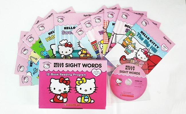 The Hello Kitty Common Words Reader Set includes 10 stories related to children's daily life experience, 2 exercise books, and 1 story CD.
