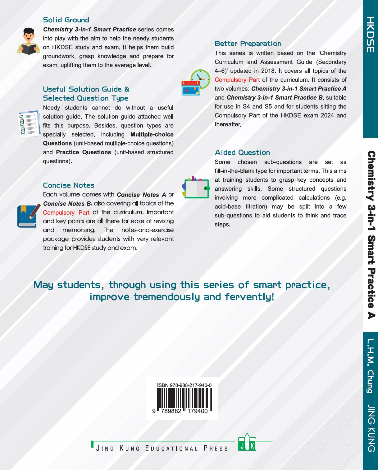 Chemistry 3-in-1 Smart Practice series comes into play with the aim to help the needy students on HKDSE study and exam. It helps them build groundwork, grasp knowledge and prepare for exam, uplifting them to the average level.