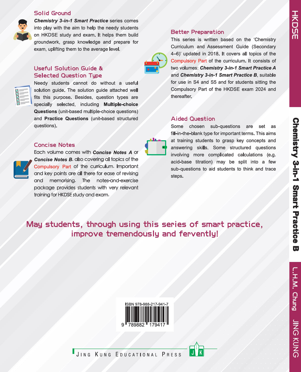 Chemistry 3-in-1 Smart Practice series comes into play with the aim to help the needy students on HKDSE study and exam. It helps them build groundwork, grasp knowledge and prepare for exam, uplifting them to the average level.
