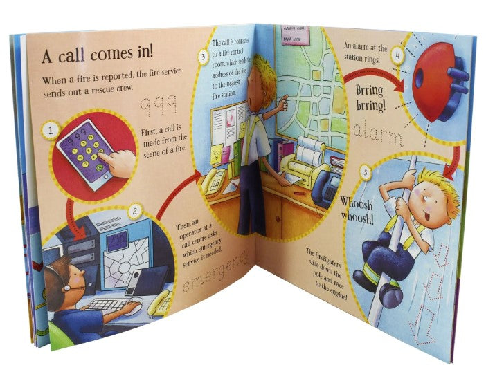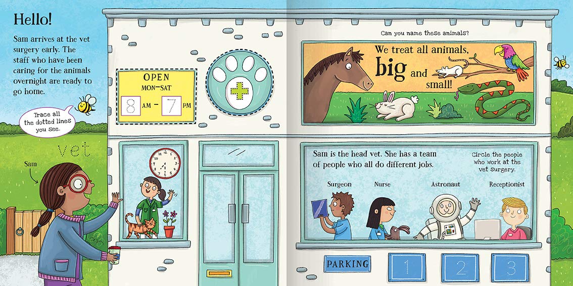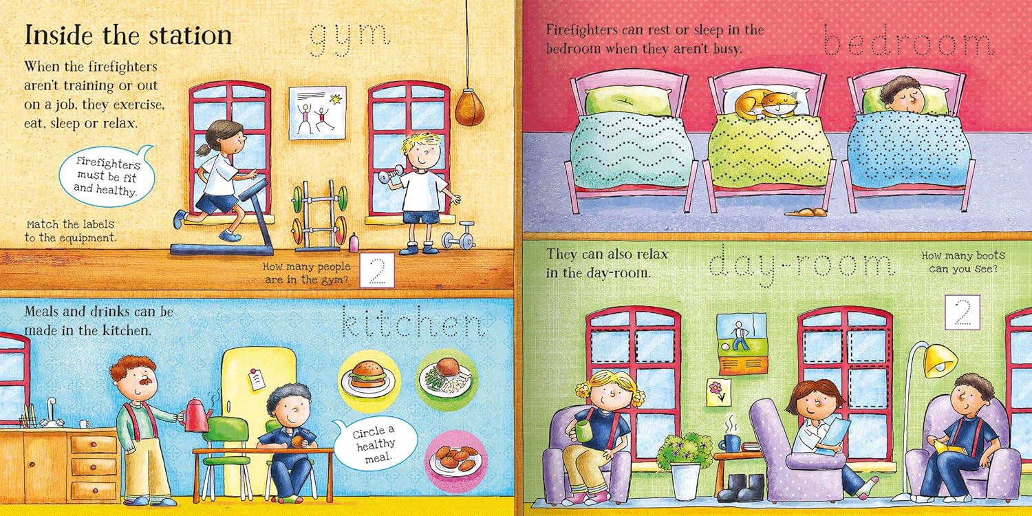 Preschoolers can practice pen control and word and number skills, while finding out all about life at the castle, farm, fire station and vet.