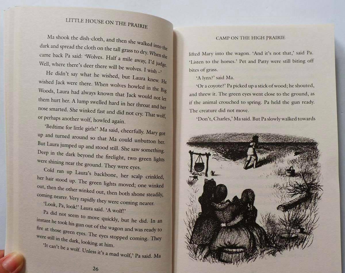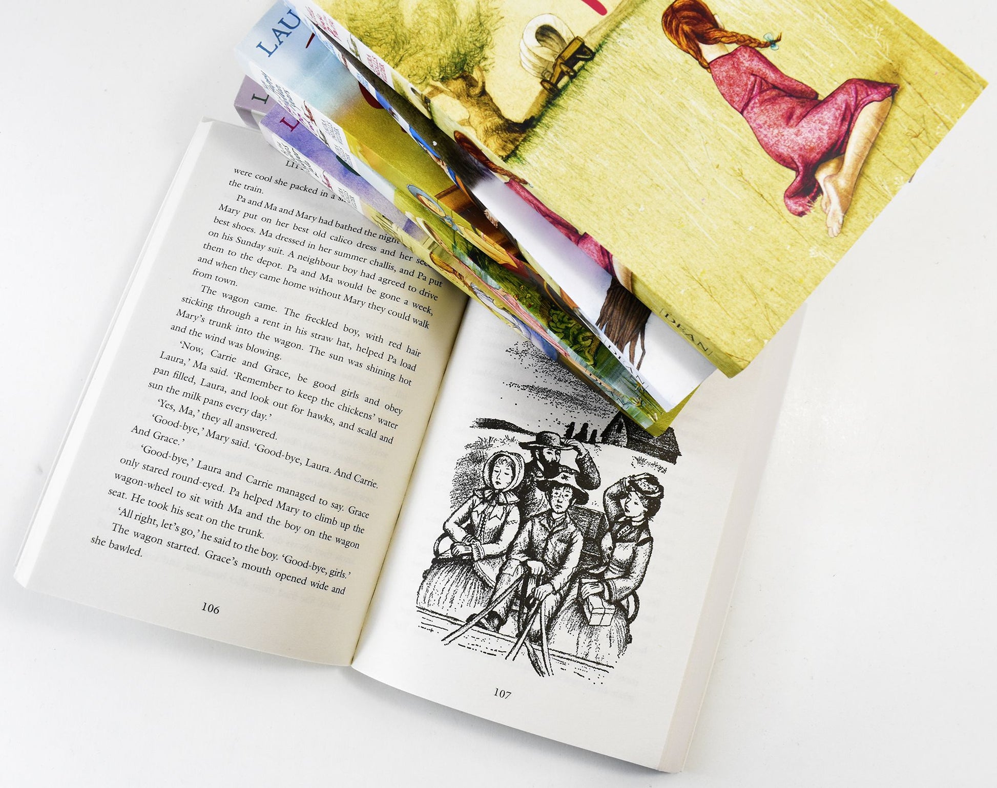 Generations have grown up with Laura Ingalls Wilder and her adventures on the American prairie of the 1870s and 80s. This collection contains the seven novels (five of them Newbery Honor Books) that follow the Ingalls family from Little House in the Big Woods, when Laura is 5, through These Happy Golden Years and her courtship with Almanzo Wilder in South Dakota. The early books are for readers 7 and up and younger listeners, while the later novels gain maturity as Laura does, and are better suited to readers 12 and up; they all feature new covers, with Garth Williams's classic drawings inside.