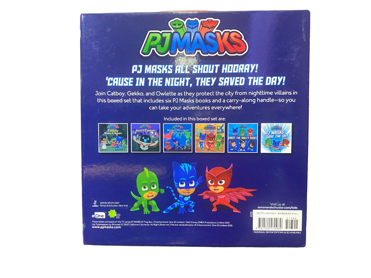 Join Catboy, Gekko, and Owlette as they go into the night to save the day in this collectible boxed set with a carry-along handle and velcro closure that features six 8x8 storybooks!