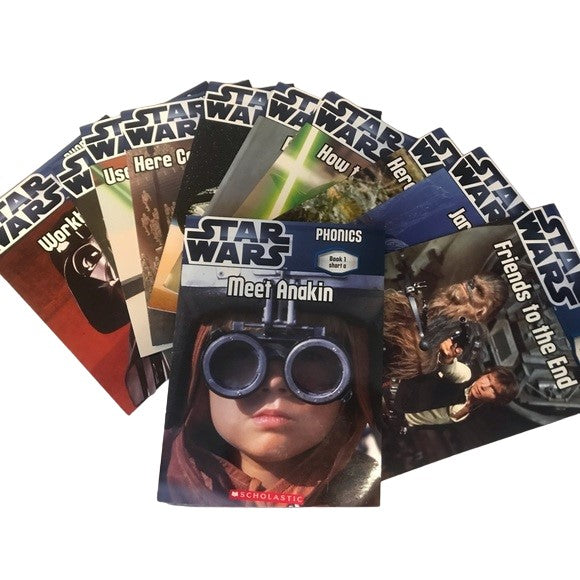 This amazing boxed set includes ten books, two workbooks and foil on the cover! Perfect for reluctant readers, each book is illustrated with full-color images from the blockbuster Star Wars movies.