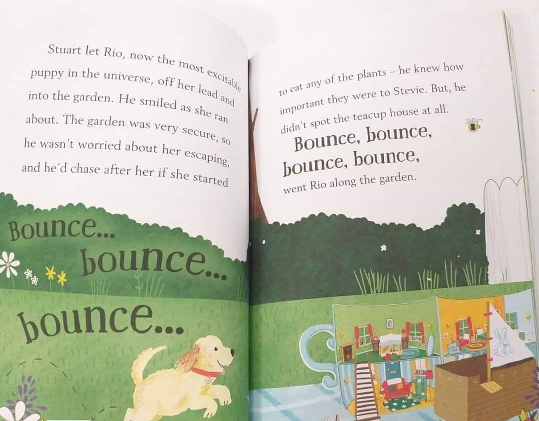 Open up the Teacup House – and meet four little rabbit heroes with big ideas! Watch out, Twitches – Stevie’s got a furry visitor. The teacup house is turned upside down when a bouncy puppy comes to stay! Silver and Mama Bo hide in the garden, and meet a creature who needs their help. Now it’s Twitches to the rescue…