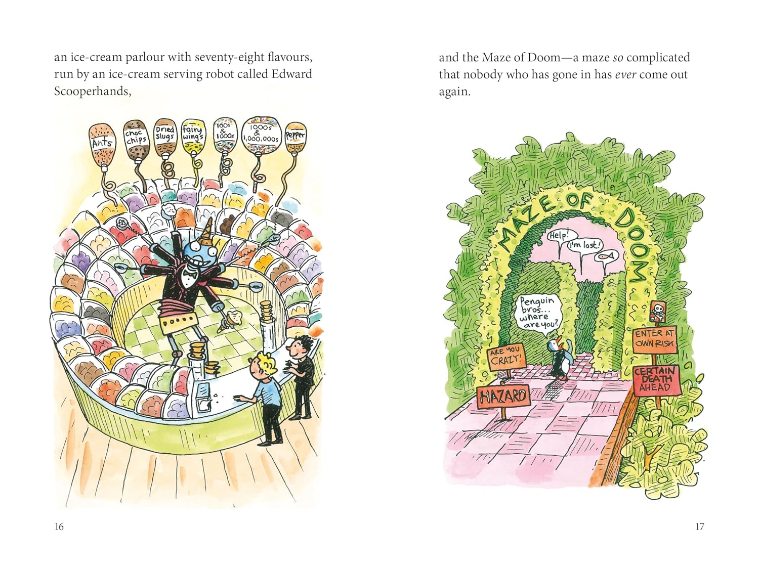 Andy and Terry have expanded their treehouse! There are now thirteen brand-new storeys, including a dodgem-car rink, a skate ramp, a mud-fighting arena, an antigravity chamber, an ice-cream parlour with seventy-eight flavours run by an ice-cream-serving robot called Edward Scooperhands, and the Maze of Doom – a maze so complicated that nobody who has gone in has ever come out again . . . Well, not yet anyway.
