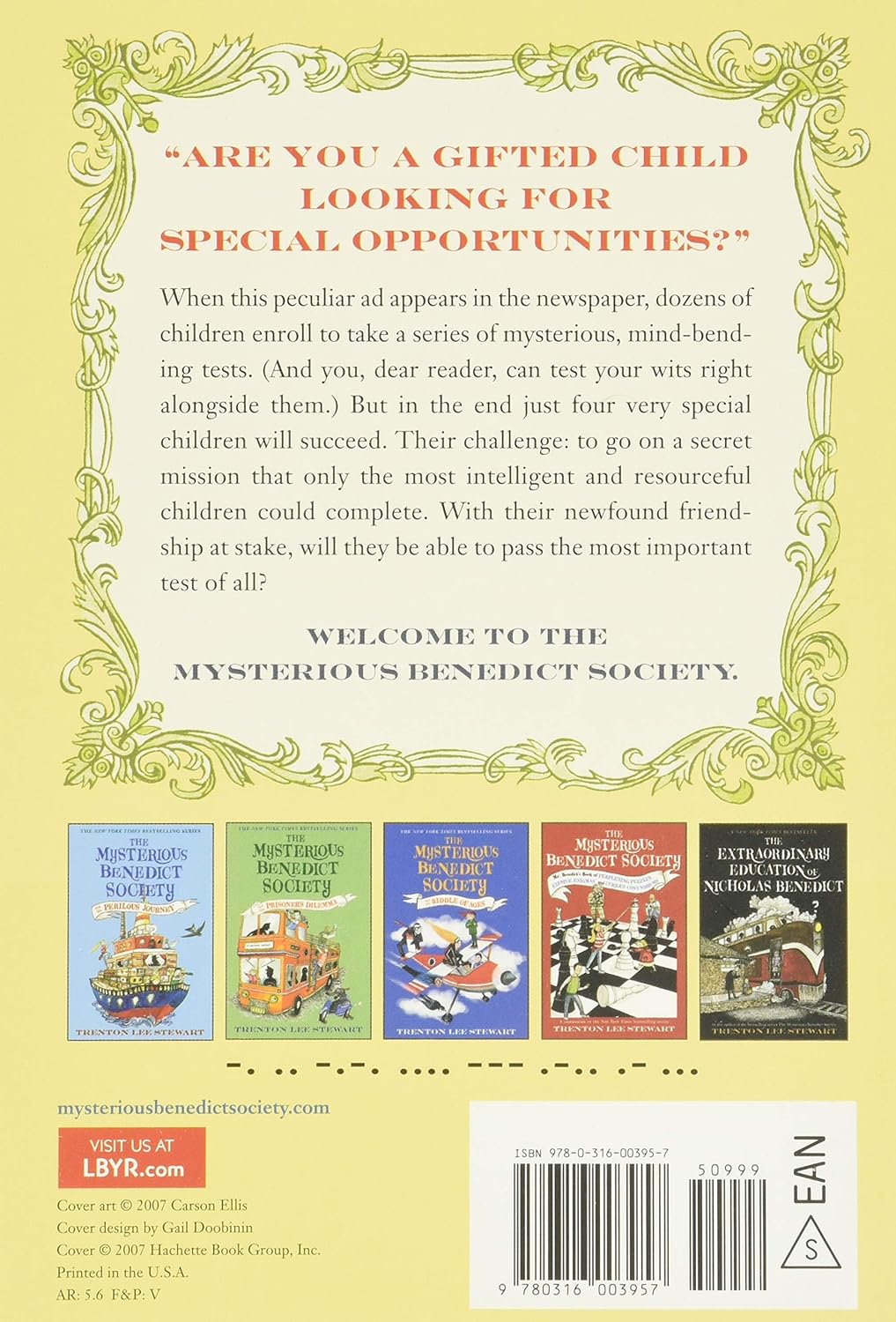 Catch up on the adventures of the Mysterious Benedict Society with this paperback boxed set, which includes the three original books in the New York Times bestselling series, The Mysterious Benedict Society, The Mysterious Benedict Society and the Perilous Journey, The Mysterious Benedict Society and the Prisoner's Dilemma, as well as the prequel, The Extraordinary Education of Nicholas Benedict, and the all-new The Riddle of Ages.