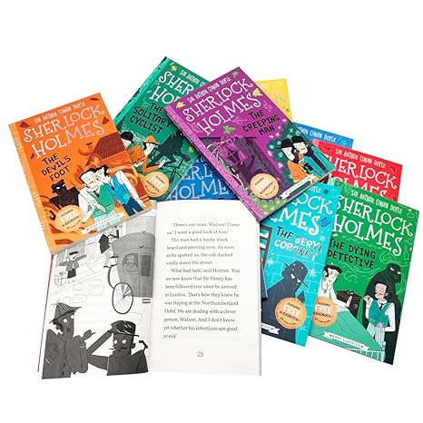 An adaptation of Sir Arthur Conan Doyle's Sherlock Holmes stories, illustrated to introduce children aged 7+ to mystery books and the classics.