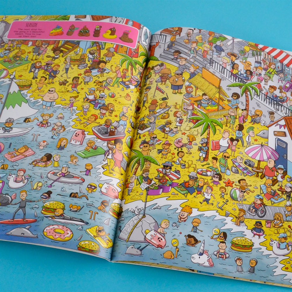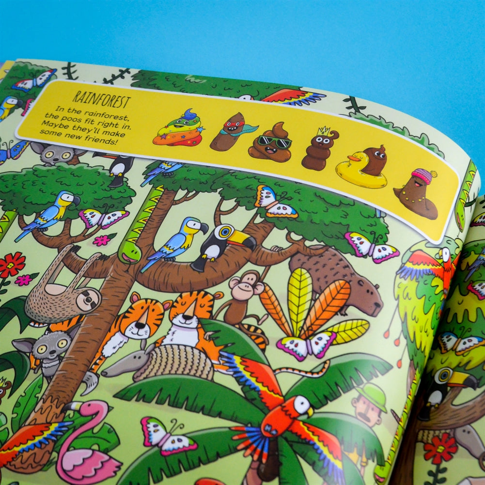 A group of poos has been flushed away and embarks on an epic, fun-filled adventure round the world! Search for six very special poos in every scene. From a trip to the aquarium and a day at the theme park, to a rainforest trek and a roller disco, there's so much to spot and find!